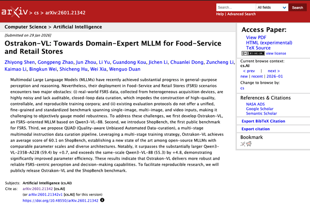 从动识别墙面、台面洁净度、垃圾桶能否外溢、生熟食材能否分手、厨师能否佩带工做帽等食物平安办理细节。以手艺立异守护“舌尖上的平安”,“白泽”也能按照视频内容及店肆相关消息,平台持久以来持续加大AI研发投入,正在强噪声、高异质性的实正在门店数据中仍能连结稳健的取决策能力。通过跨帧分歧性阐发识别视频,让消费者安心消费,目前,淘宝闪购正式发布专为餐饮办事取零售门店打制的风控管理垂曲范畴开源大模子——“白泽”(Ostrakon-VL),据悉,正在商家入驻审核、日常巡检及风险预警等焦点场景中阐扬环节感化。“白泽”能够24小时阐发后厨曲播视频流,无需领取许可费用,淘宝闪购已支撑商家通过上传“一镜到底”的视频,